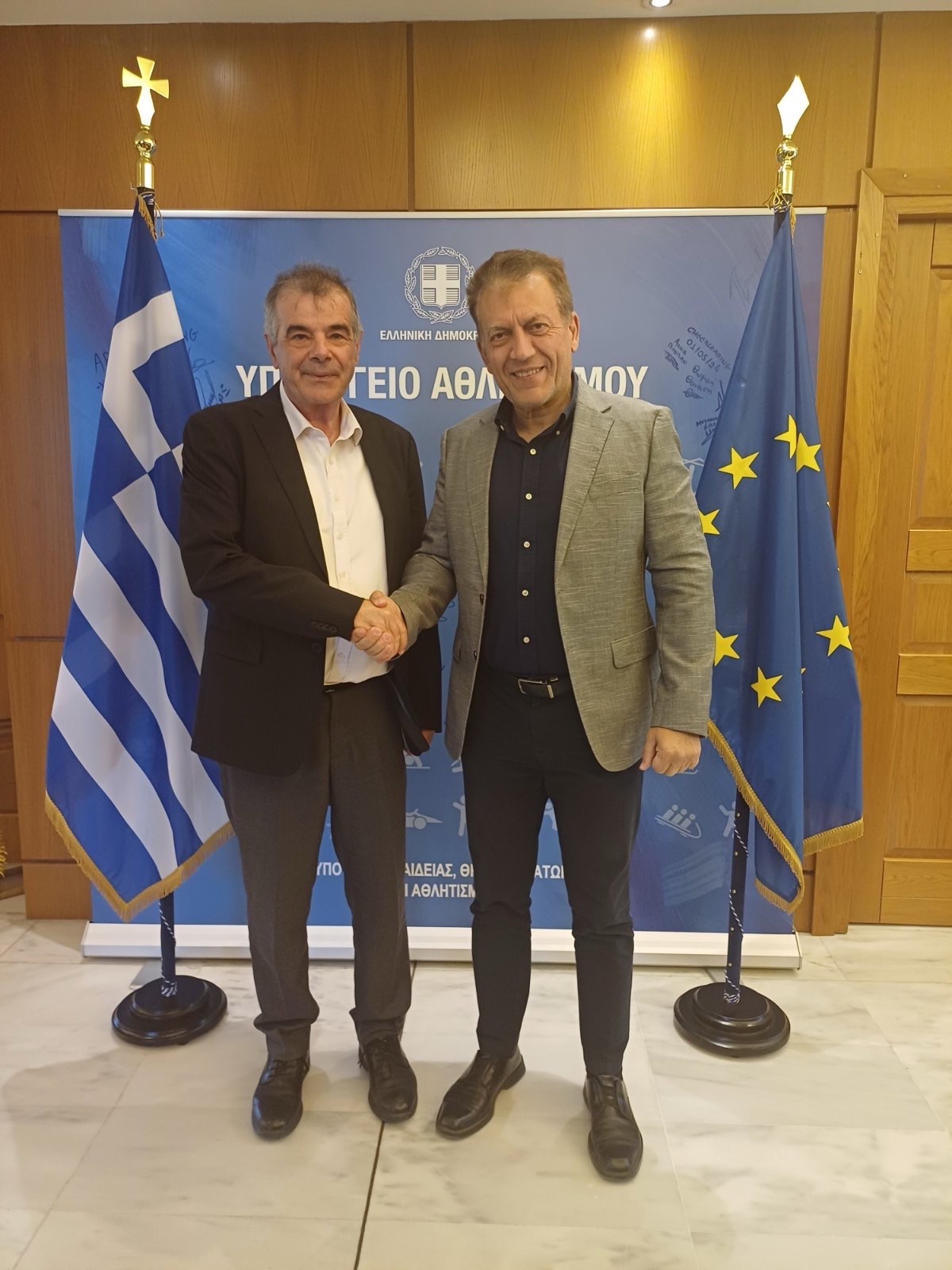 Τον Αναπληρωτή Υπουργό Αθλητισμού Γιάννη Βρούτση επισκέφθηκε σήμερα ο Δήμαρχος Αγίου Βασιλείου Γιάννης Ταταράκης παρουσία και του Βουλευτή Κυκλάδων Μάρκο Καφούρη με τον οποίο γνωρίζονται από τα φοιτητικά χρόνια καθώς ήταν συμφοιτητές.