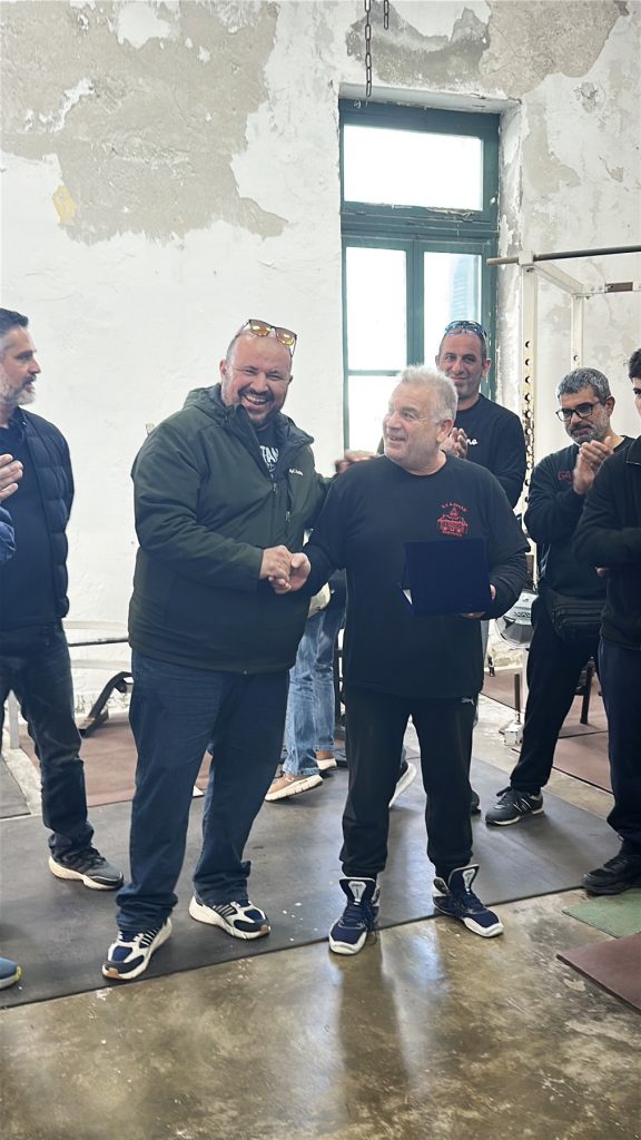 Οι παλαίμαχοι αθλητές παρέδωσαν στον δάσκαλό τους μια τιμητική πλακέτα, ως ελάχιστο δείγμα ευγνωμοσύνης για την καθοδήγηση τεσσάρων δεκαετιών.