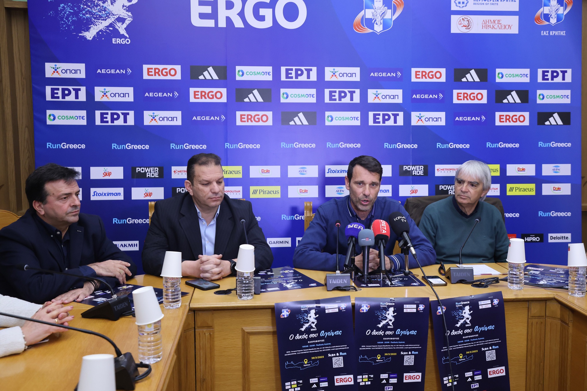 Η μεγάλη γιορτή-θεσμός του αθλητισμού και του πολιτισμού RUN GREECE ΗΡΑΚΛΕΙΟ 2025 που θα πραγματοποιηθεί την Κυριακή 30 Μαρτίου και διοργανώνουν ο Σ.Ε.Γ.Α.Σ. και η Ε.Α.Σ. Σ.Ε.ΓΑ.Σ. Κρήτης, με συνδιοργανωτές την ΠΕΡΙΦΕΡΕΙΑ ΚΡΗΤΗΣ και τον ΔΗΜΟ ΗΡΑΚΛΕΙΟΥ, μεγάλο χορηγό την ERGOΑΣΦΑΛΙΣΤΙΚΗ και τοπικούς χορηγούς τις Μινωικές Γραμμές, το Σύνδεσμο Τουριστικών και Ταξιδιωτικών Γραφείων Κρήτης και τα Super Market Χαλκιαδάκης, παρουσιάστηκε σήμερα στην Περιφέρεια Κρήτης στο πλαίσιο συνέντευξης τύπου.