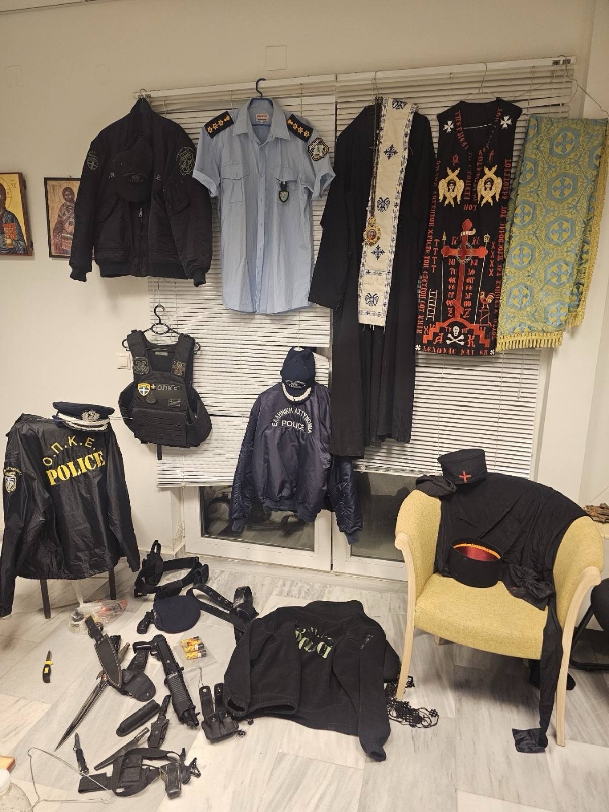 Βρέθηκαν και κατασχέθηκαν εκκλησιαστικά και αστυνομικά είδη ένδυσης και εξάρτησης – Επιπλέον κατασχέθηκαν αεροβόλο όπλο, σφαιρίδια και ξίφος