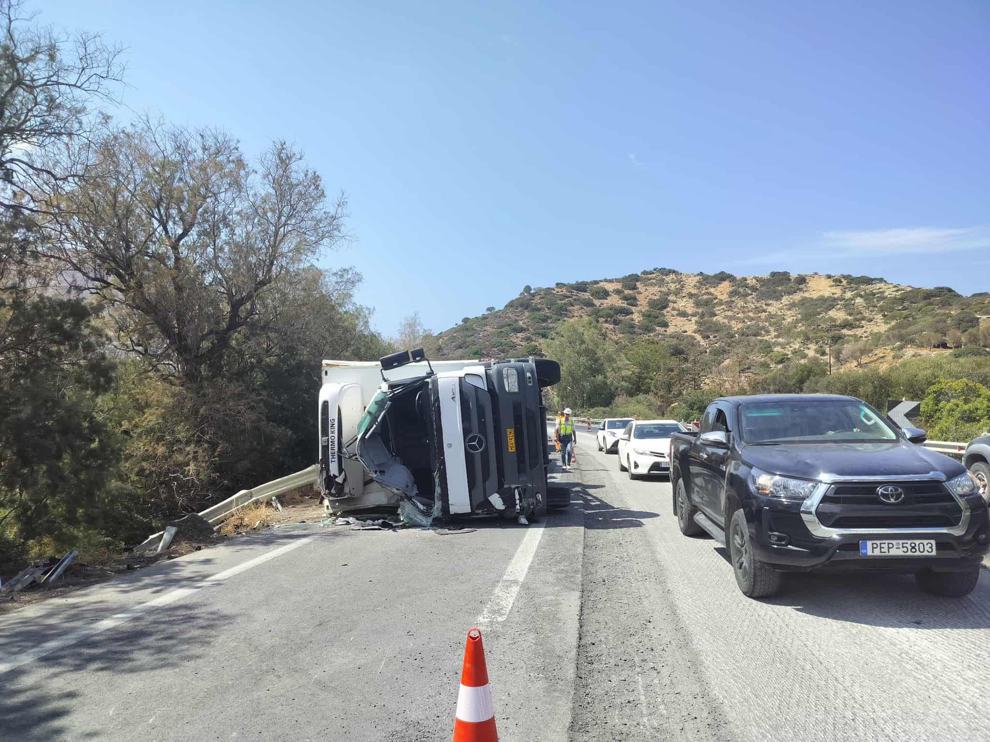 Ένα φορτηγό, κάτω από αδιευκρίνιστες μέχρι στιγμής συνθήκες, εξετράπη της πορείας του και ντεραπάρισε, με αποτέλεσμα να εγκλωβιστεί στο όχημα ο 17χρονος οδηγός του.
