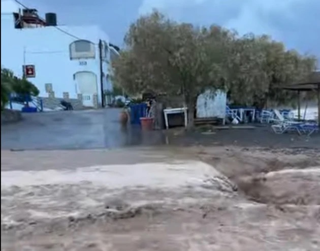 Πρωτοφανές κύμα κακοκαιρίας έπληξε το πρωί της Δευτέρας τον Τσούτσουρα, με βροχή διάρκειας μόλις 15 λεπτών να μετατρέπει τους δρόμους σε ορμητικά ποτάμια, καταλήγοντας μέχρι τη θάλασσα.