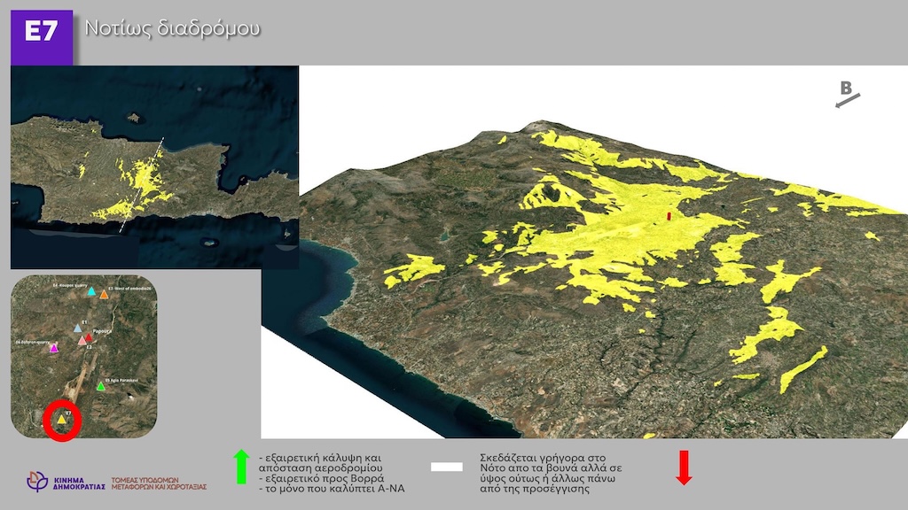 - να μετακινηθεί ο αεροδιάδρομος στο σύνολό του και να οριοθετηθεί από το κατώφλι του υφιστάμενου διαδρόμου και 250-300 μέτρα πιο νότια