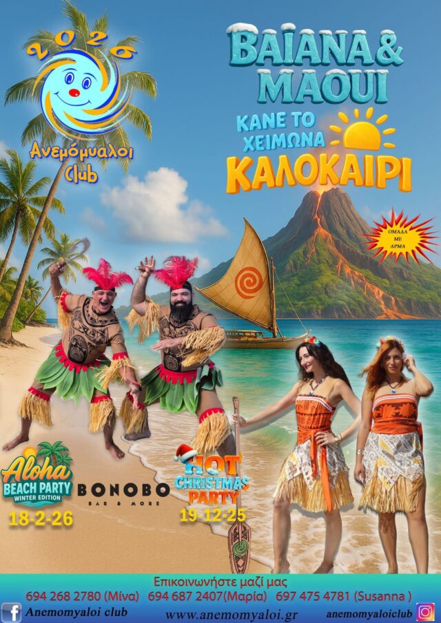 ΚΑΡΝΑΒΑΛΙ ΣΤΟΛΕΣ ΟΜΑΔΩΝ Ανεμόμυαλοι Club 2026 Ιαν 10, 2026 FacebookTwitterWhatsAppLinkedinViberTelegramEmail Ρεθεμνιώτικο Καρναβάλι 2026 Ομάδα: Ανεμόμυαλοι Club Θέμα: «Βαϊάνα και Μάουι: Κάνε το χειμώνα καλοκαίρι» Τηλ: 694 268 2780 – 694 687 2407 – 697 475 4781