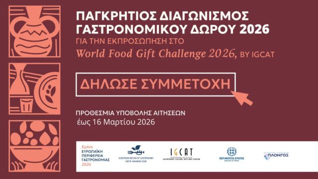 Ανοιχτή πρόσκληση για τον Διαγωνισμό Γαστρονομικού Δώρου 2026 στο πλαίσιο των εκδηλώσεων «Κρήτη: Ευρωπαϊκή Περιφέρεια Γαστρονομίας»