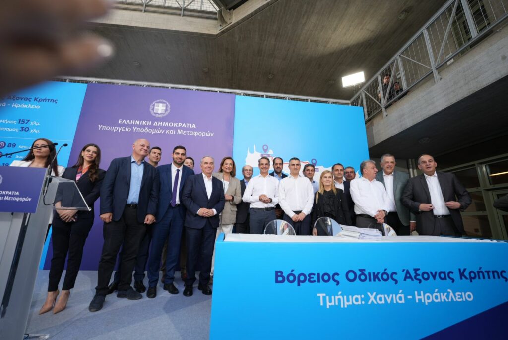 Παρουσία του Πρωθυπουργού, Κυριάκου Μητσοτάκη, υπεγράφη, από τον Υπουργό Υποδομών και Μεταφορών Χρίστο Δήμα, η σύμβαση παραχώρησης για τη «Μελέτη – Κατασκευή – Χρηματοδότηση – Λειτουργία – Συντήρηση και Εκμετάλλευση του Βόρειου Οδικού Άξονα Κρήτης (Β.Ο.Α.Κ.) στο τμήμα Χανιά – Ηράκλειο», σήμερα, στο Πολιτιστικό Συνεδριακό Κέντρο Ηρακλείου.