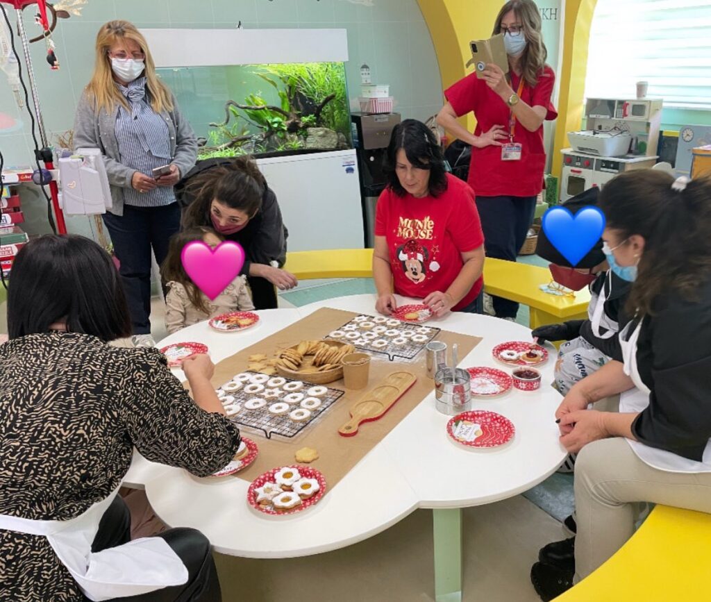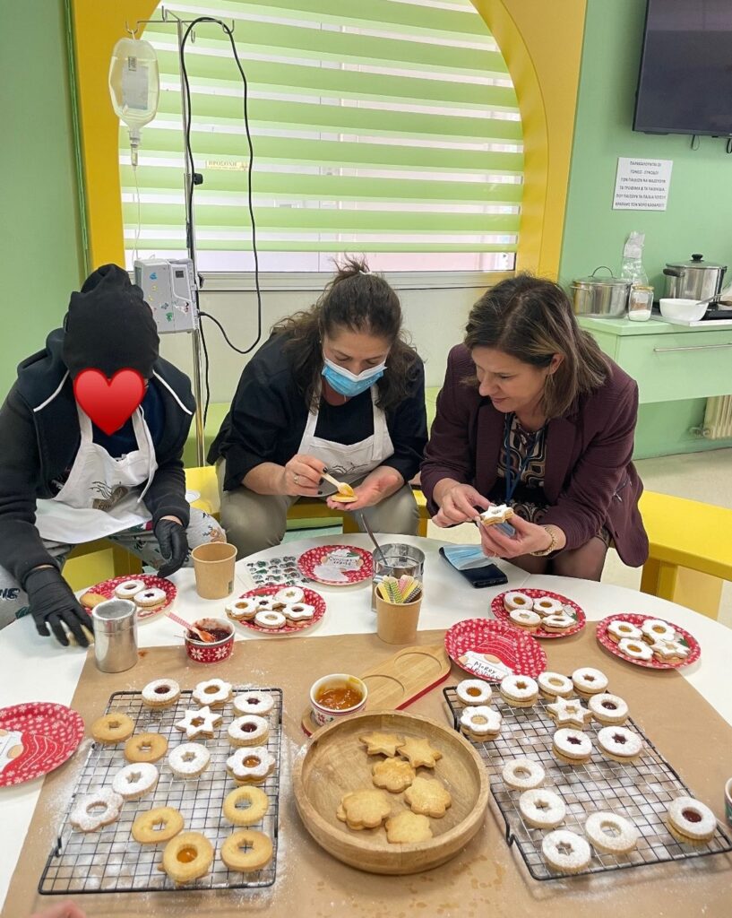 Στον παιδότοπο της κλινικής δημιουργήθηκε μια μαγική κουζίνα γεμάτη αγάπη, όπου τα μικρά χεράκια των παιδιών έφτιαξαν τα πιο όμορφα και νόστιμα Χριστουγεννιάτικα μπισκότα. Μέσα σε αυτήν την χαρούμενη ατμόσφαιρα, οι γυναίκες του Συλλόγου “Φεστιβάλ Κρητικής Κουζίνας” και οι γονείς των παιδιών ήταν κοντά τους, προσφέροντας αγάπη και θαλπωρή, όπως μόνο το γιορτινό σπίτι μπορεί να κάνει.