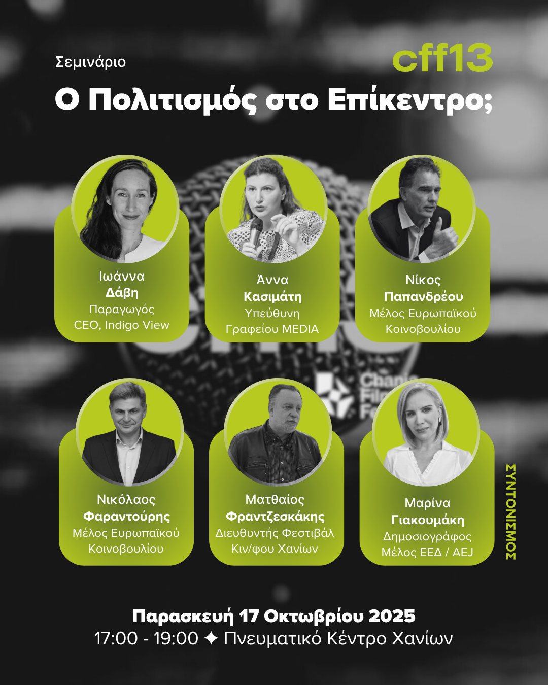 Στο πλαίσιο της λειτουργίας του Ευρωπαϊκού έργου Europe Direct, το Europe Direct της Περιφέρειας Κρήτης, το 13ο Φεστιβάλ Κινηματογράφου Χανιών (15-26 Οκτωβρίου 2025), και το Πρόγραμμα Δημιουργική Ευρώπη – Υποπρόγραμμα MEDIA στην Ελλάδα, συνδιοργανώνουν διαδραστικό σεμινάριο, με τίτλο: «Ο πολιτισμός στο επίκεντρο; Προϋπολογισμός της ΕΕ για την περίοδο 2028-2034».