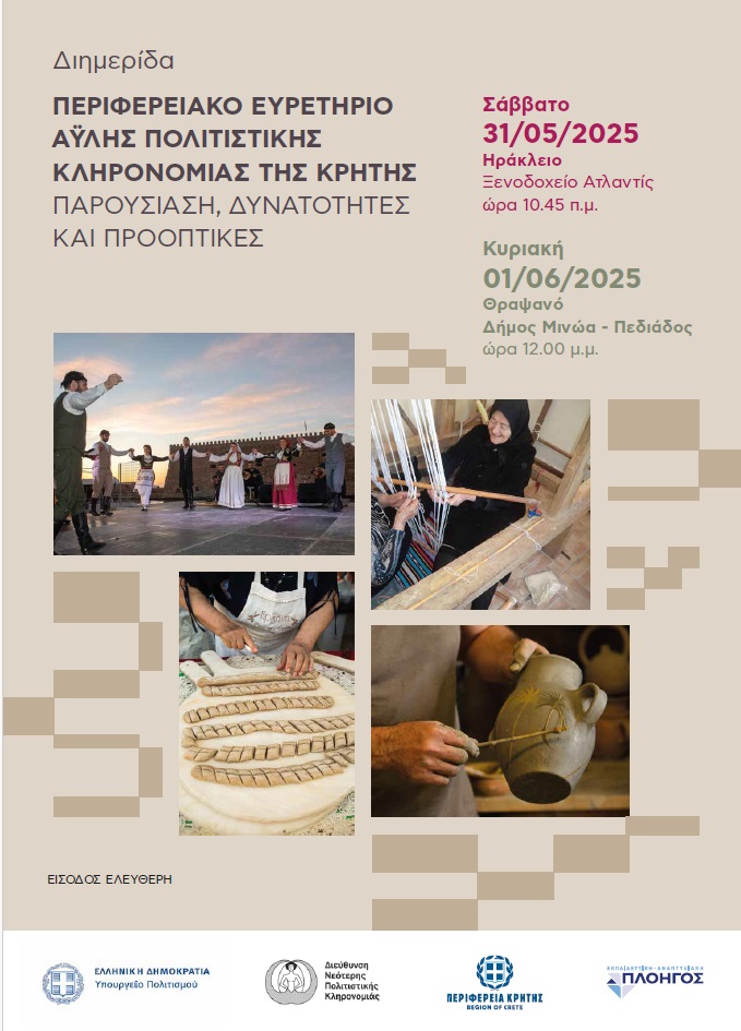 Διημερίδα Περιφέρειας Κρήτης με θέμα «Περιφερειακό Ευρετήριο Άυλης Πολιτιστικής Κληρονομιάς της Κρήτης: Παρουσίαση, Δυνατότητες και Προοπτικές»