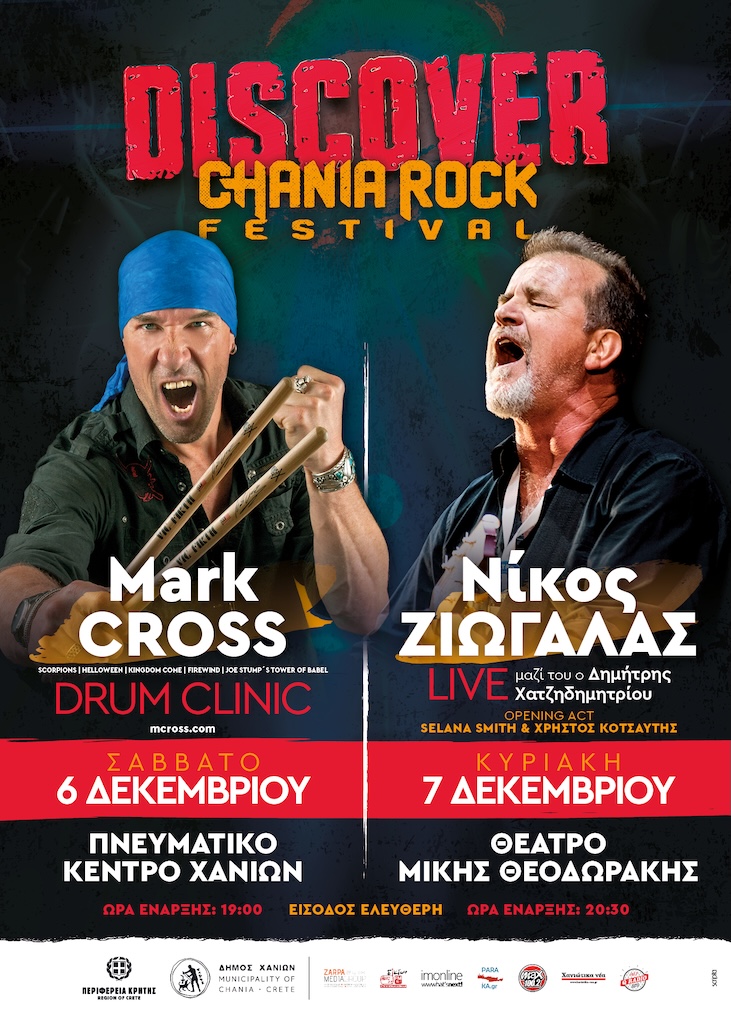 Το Chania Rock Festival παρουσιάζει το φετινό Discover, ενός διήμερου μουσικού θεσμού που επιστρέφει με δύο ξεχωριστές εκδηλώσεις στα Χανιά, το Σάββατο 6 και την Κυριακή 7 Δεκεμβρίου 2025. Το πρόγραμμα περιλαμβάνει ένα υψηλού επιπέδου drum clinic, καθώς και μια μεγάλη συναυλία με τον Νίκο Ζιώγαλα. Η είσοδος και στις δύο εκδηλώσεις είναι ελεύθερη για το κοινό.