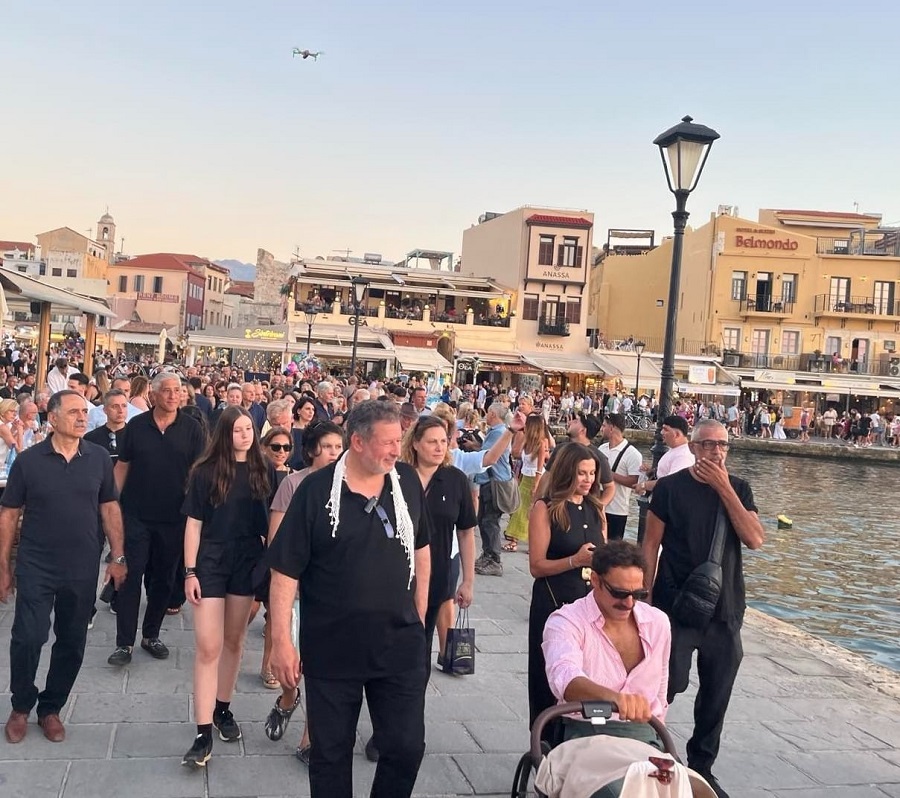 Αργότερα το απόγευμα, εκατοντάδες μικροί και μεγάλοι από Συλλόγους, φορείς αλλά και απλοί πολίτες ξεκίνησαν από το Ναυτικό Μουσείο Κρήτης τραγουδώντας Θεοδωράκη και με προπορευόμενο τον Παραολυμπιονίκη και Παγκόσμιο Πρωταθλητή Κολύμβησης, Αντώνη Τσαπατάκη, έφτασαν στην πλατεία πίσω από το Γιαλί Τζαμί.