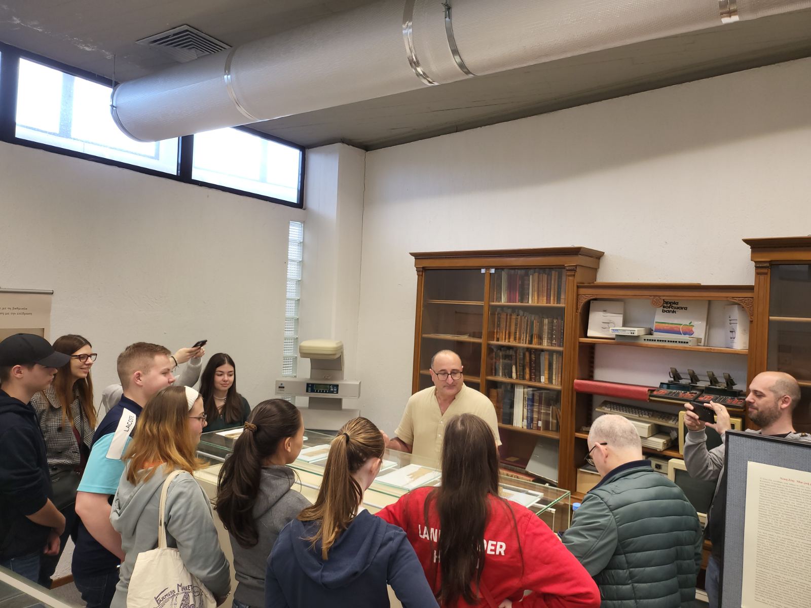 Στο πλαίσιο του Προγράμματος Ανταλλαγής Ελλήνων και Γερμανών Νέων, που υλοποιείται από το Deutsch-griechisches Jugendwerk / Ελληνογερμανικό Ίδρυμα Νεολαίας (https://dgjw-egin.org/el/), και κατόπιν έγκρισης του φετινού προγράμματος ανταλλαγής, εννέα Γερμανοί νέοι και νέες, αθλητές ξιφασκίας του Fechterschaft im TV 1862 Langen e.V., συνοδευόμενοι από τους ενήλικες συνοδούς τους, επισκέφθηκαν το Εργαστήριο Παπυρολογίας και Επιγραφικής του Τμήματος Φιλολογίας την Παρασκευή 11 Απριλίου 2025.