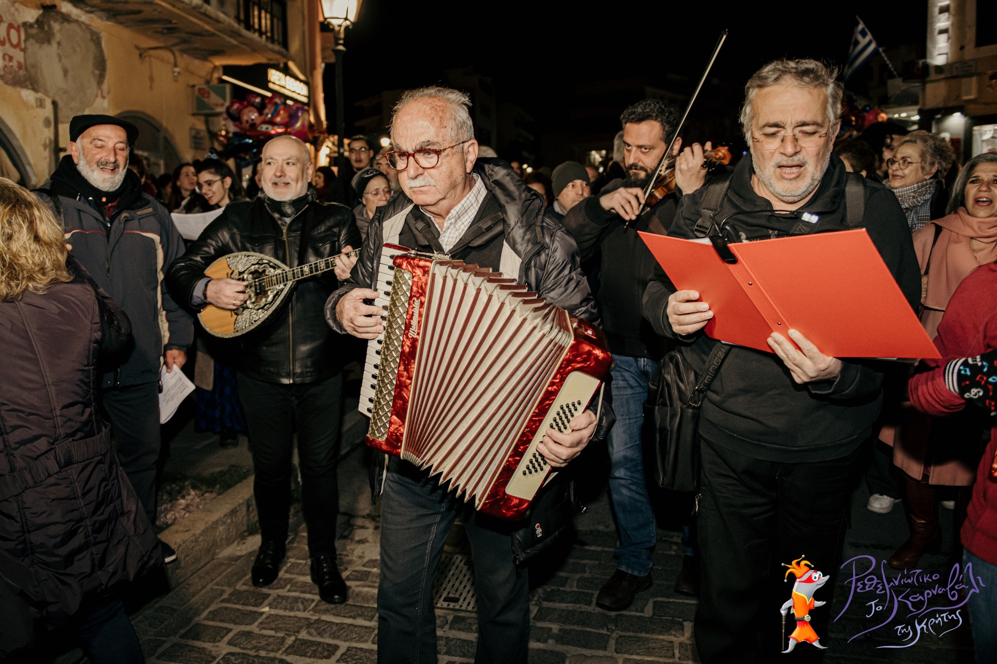 Η Δημοτική Χορωδία Ρεθύμνου, η χορωδία με τους μαθητές και καθηγητές από το Μουσικό Σχολείο Ρεθύμνου, με τη συνοδεία μουσικών της πόλης και πλήθος καρναβαλιστών, αναβίωσαν για ακόμα μία χρονιά το έθιμο της καντάδας στους δρόμους της παλιάς πόλης.
