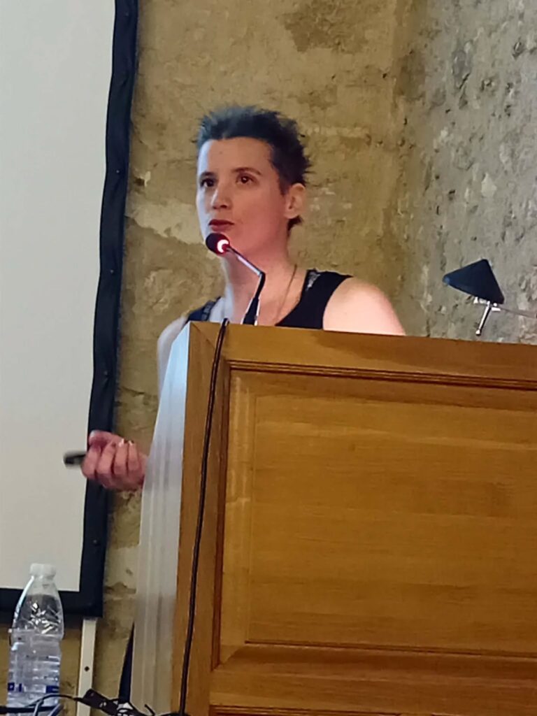Η ομιλήτρια παρουσίασε τους σημαντικότερους σταθμούς της θεατρικής δραστηριότητας της πόλης, φωτίζοντας τους χώρους, τις ομάδες επαγγελματικές και ερασιτεχνικές, αλλά και τις προσωπικότητες που διαμόρφωσαν τη θεατρική της ταυτότητα κατά τον 20ό αιώνα.