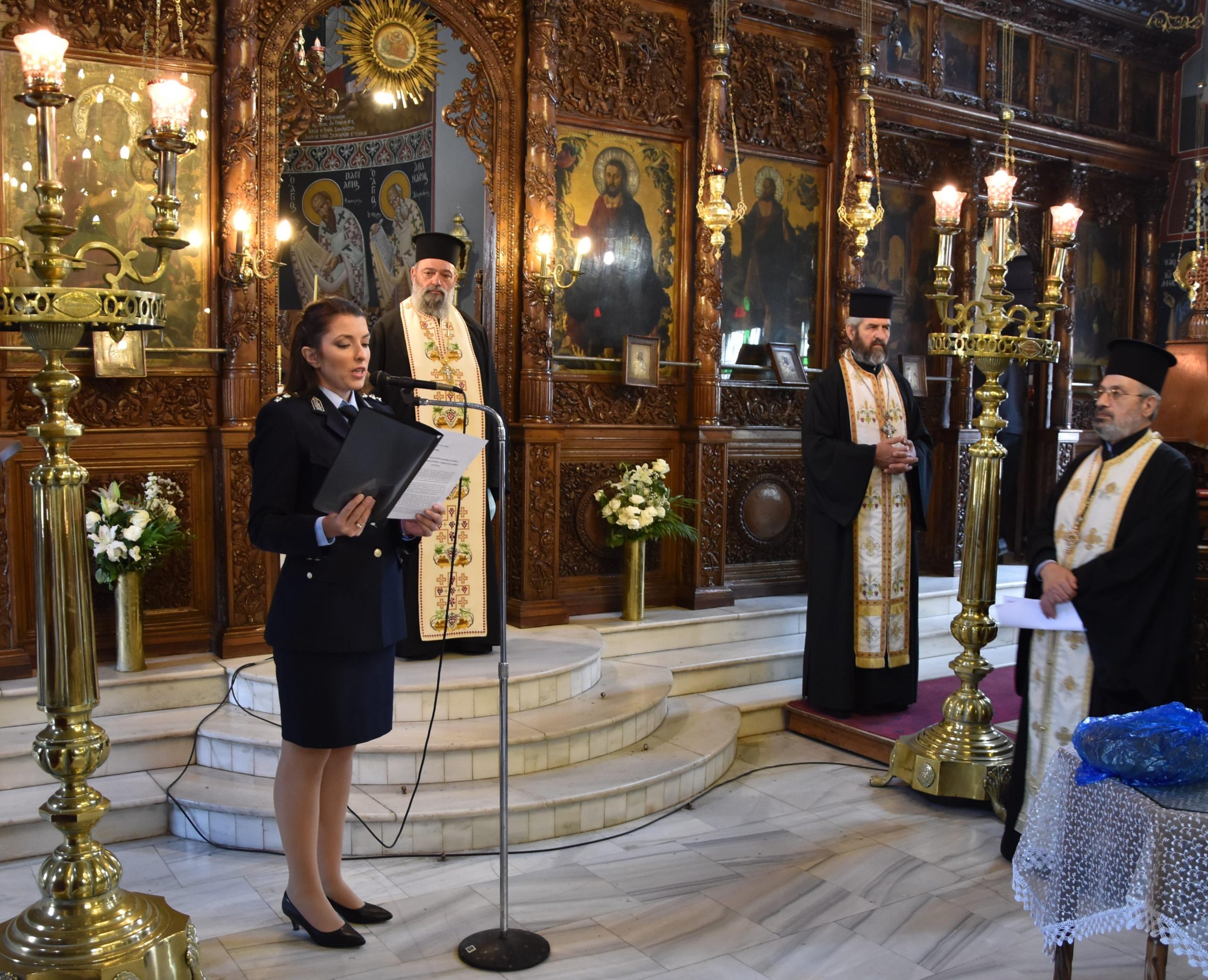 • στη Διεύθυνση Αστυνομίας Χανίων στον Ιερό Ναό Αγίων Αποστόλων Πέτρου και Παύλου χοροστατούντος του Γενικού Αρχιερατικού Επιτρόπουτης Ιεράς Μητροπόλεως Κυδωνίας και Αποκορώνου Πρωτοπρεσβύτερου Γεωργίου Περάκη,