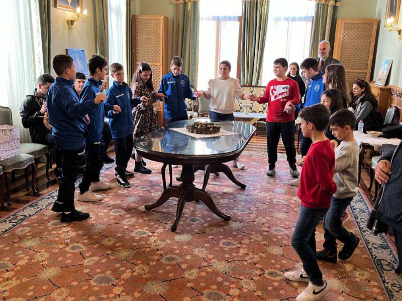 Ο Σεβασμιώτατος ξενάγησε τα παιδιά στο Επισκοπείο και όλοι μαζί έψαλαν τα κάλαντα, τραγούδησαν και χόρεψαν παραδοσιακούς κρητικούς χορούς και δέχθηκαν τον έπαινο και την ευαρέσκεια του Σεβασμιωτάτου για το επιτελούμενο έργο στη νεότητα.