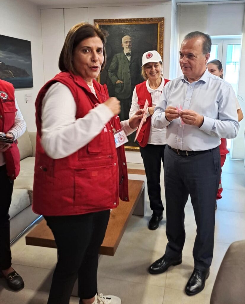 Οι κυρίες – εκπρόσωποι των Τομέων Υγείας, Κοινωνικής Πρόνοιας και Σαμαρειτών του Ε.Ε.Σ, επισκέφθηκαν τον Δήμαρχο στο πλαίσιο δράσης που υλοποιούν στο πλαίσιο της Παγκόσμιας Ημέρας Καρκίνου του Μαστού (25 Οκτωβρίου) με στόχο την ευαισθητοποίηση, ενημέρωση και προώθηση της πρόληψης και της έγκαιρης διάγνωσης της νόσου.
