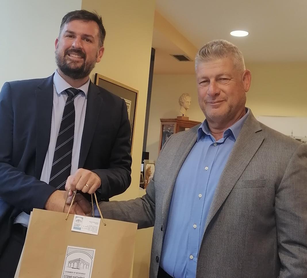 Εθιμοτυπική επίσκεψη, του Α’ Γραμματέα της Πρεσβείας των ΗΠΑ στη χώρα μας, κ. Brian Timm-Brock στο Επιμελητήριο Ρεθύμνης πραγματοποιήθηκε το μεσημέρι της Τετάρτης, 3 Δεκεμβρίου.