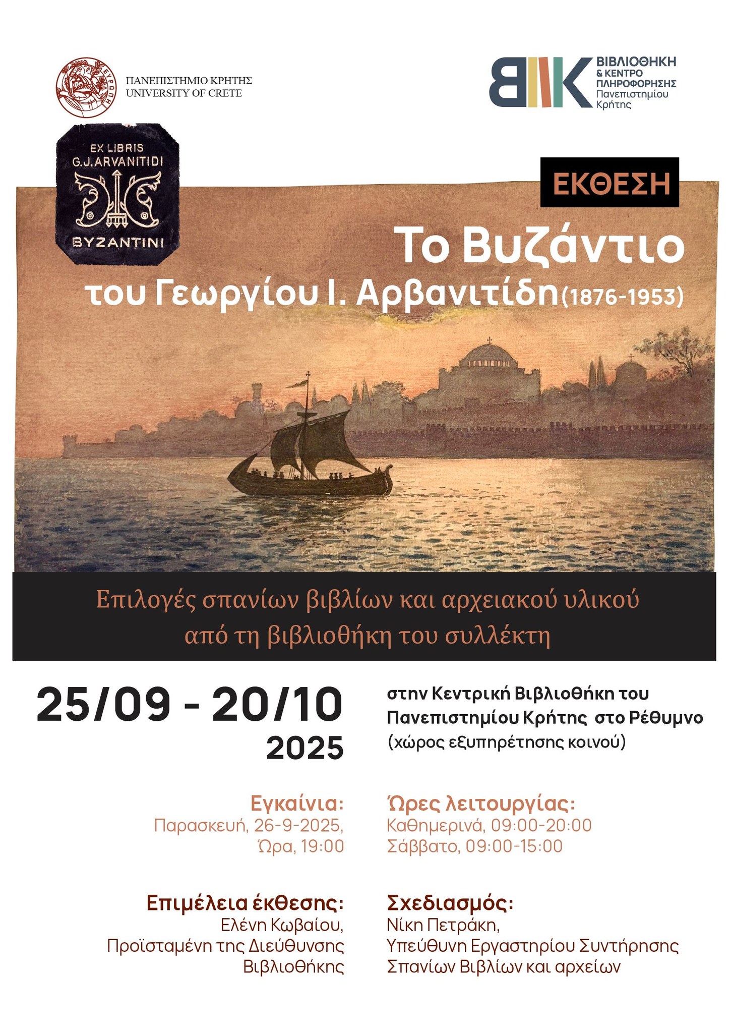 - «Το Βυζάντιο του Γεωργίου Ι. Αρβανιτίδη (1876-1953): Επιλογές σπανίων βιβλίων και αρχειακού υλικού από τη Βιβλιοθήκη του συλλέκτη»