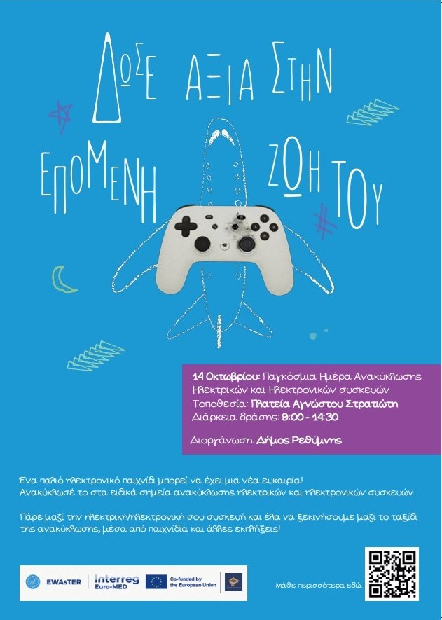 Ο Δήμος Ρεθύμνης καλεί όλους τους πολίτες να συμμετάσχουν στην εκδήλωση της 14ης Οκτωβρίου, με κεντρικό μήνυμα «Δώσε αξία στην επόμενη ζωή της ηλεκτρικής – ηλεκτρονικής συσκευής σου».