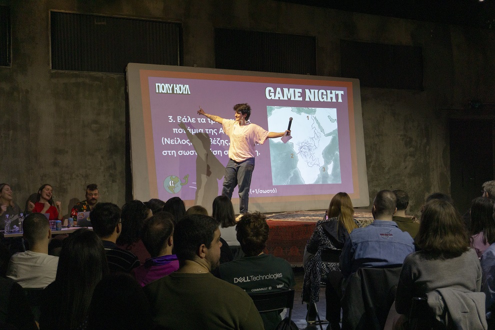 Το παιχνίδι γνώσεων ή αλλιώς game night είναι ένα κουίζ (και όχι μόνο) με παρουσιάστρια τη Σμαράγδα (αυτή από το TikTok), που απευθύνεται σε όλα τα πλάσματα, όλων των ηλικιών (παιδιά με τη συνοδεία ενηλίκων, εφηβάκια, φοιτητές και ενήλικες)! Μόνος ή με την παρέα σου, κάθισε αναπαυτικά, δοκίμασε τις γνώσεις σου και γνώρισε ανθρώπους με την ίδια αγάπη για εξερεύνηση. Οι ερωτήσεις είναι αναπάντεχες, η διάθεση στα ύψη και πριν το καταλάβεις έχουν περάσει 3 ώρες γεμάτες γεωγραφικά φακτς και πολύ γέλιο!