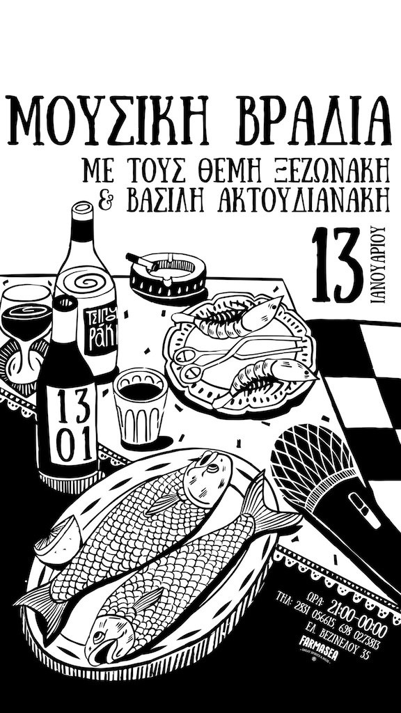 O Θέμης Ξεζωνάκης και ο Βασίλης Ακτουδιανάκης ζωντανά στο Farmasea (Ελ. Βενιζέλου 35, Παραλία).