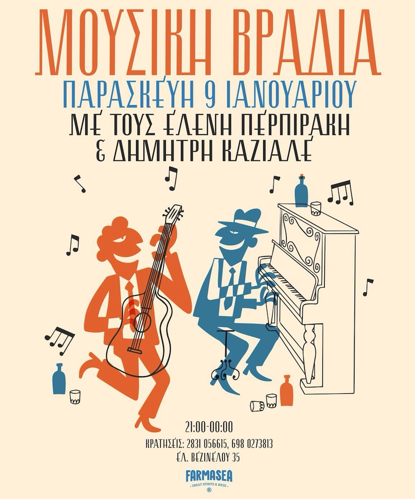 Ο Δημήτρης Καζιάλες και η Ελένη Περπιράκη ζωντανά στο Farmasea (Ελ. Βενιζέλου 35, Παραλία).