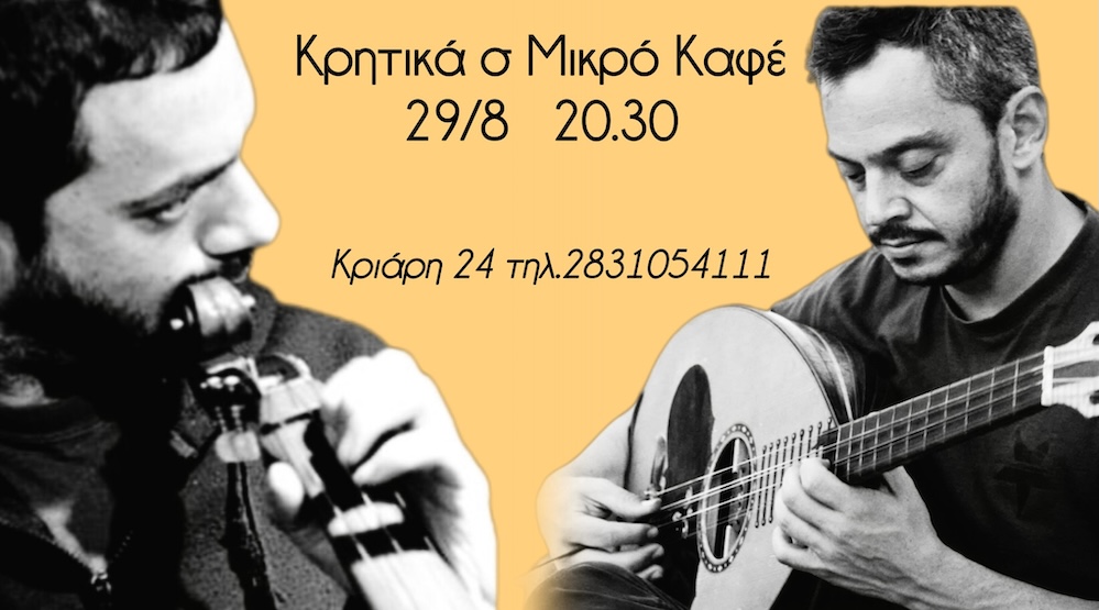 Ο Άρης Πρεβεζάνος και ο Σταύρος Μαραγκουδάκης σε μια κρητική βραδιά στο Μικρό Καφέ (Κριάρη 24 – έναντι ΟΑΕΔ).