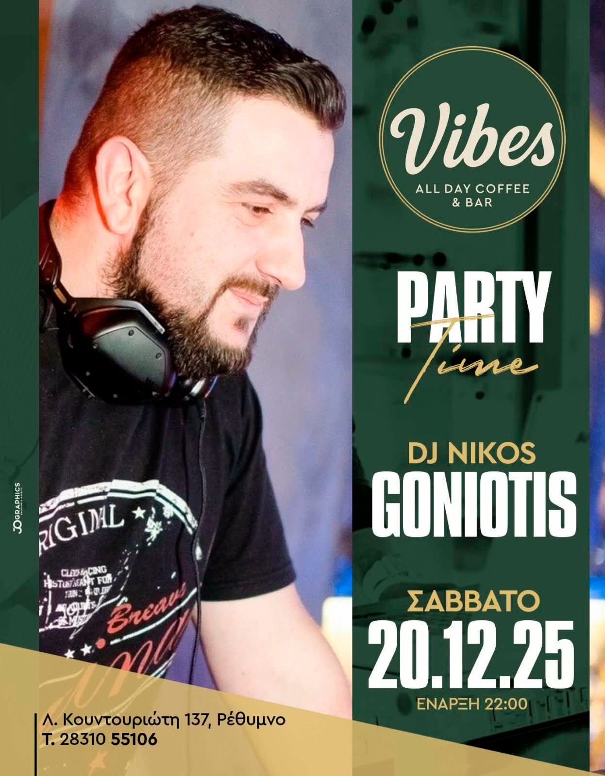 O DJ Nikos Goniotis στα decks του Vibes All Day Coffee & Bar (Κουντουριώτου 137, Ρέθυμνο).