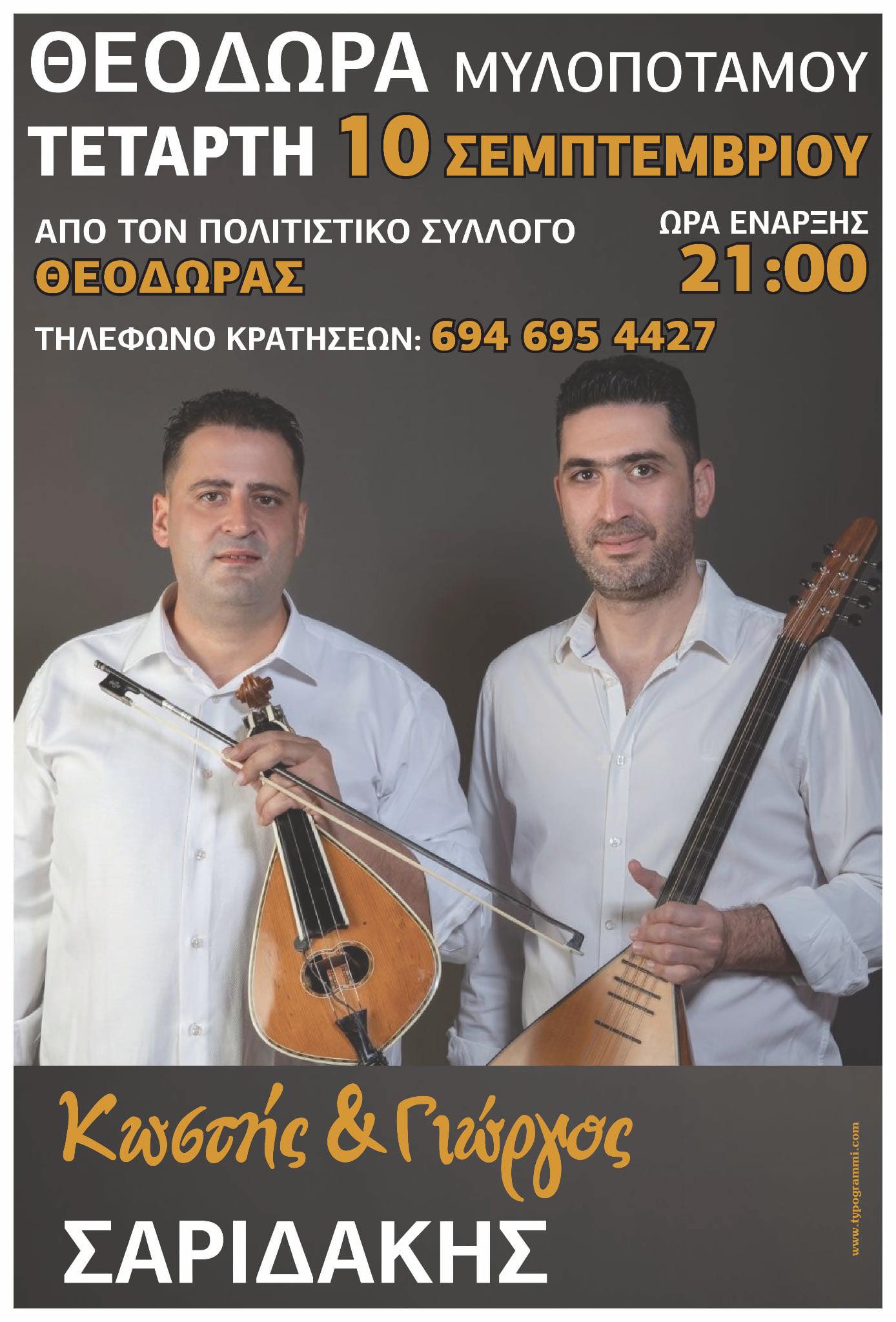 O Κώστας και ο Γιώργος Σαριδάκης για μια κρητική βραδιά στη Θεοδώρα Μυλοποτάμου.