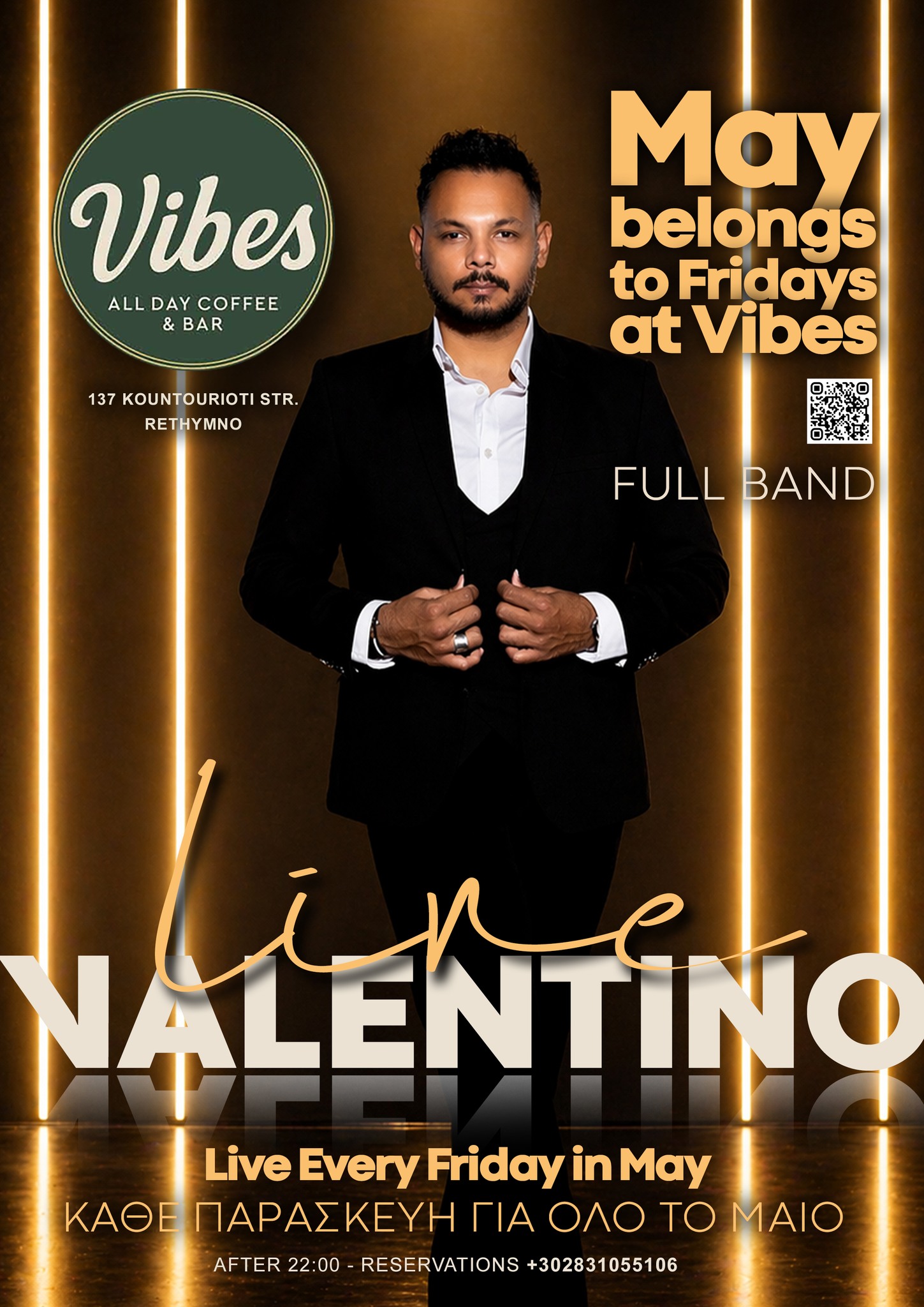 O VALENTINO ζωντανά κάθε Παρασκευή στο Vibes All Day Coffee & Bar (Κουντουριώτη 137, Ρέθυμνο).