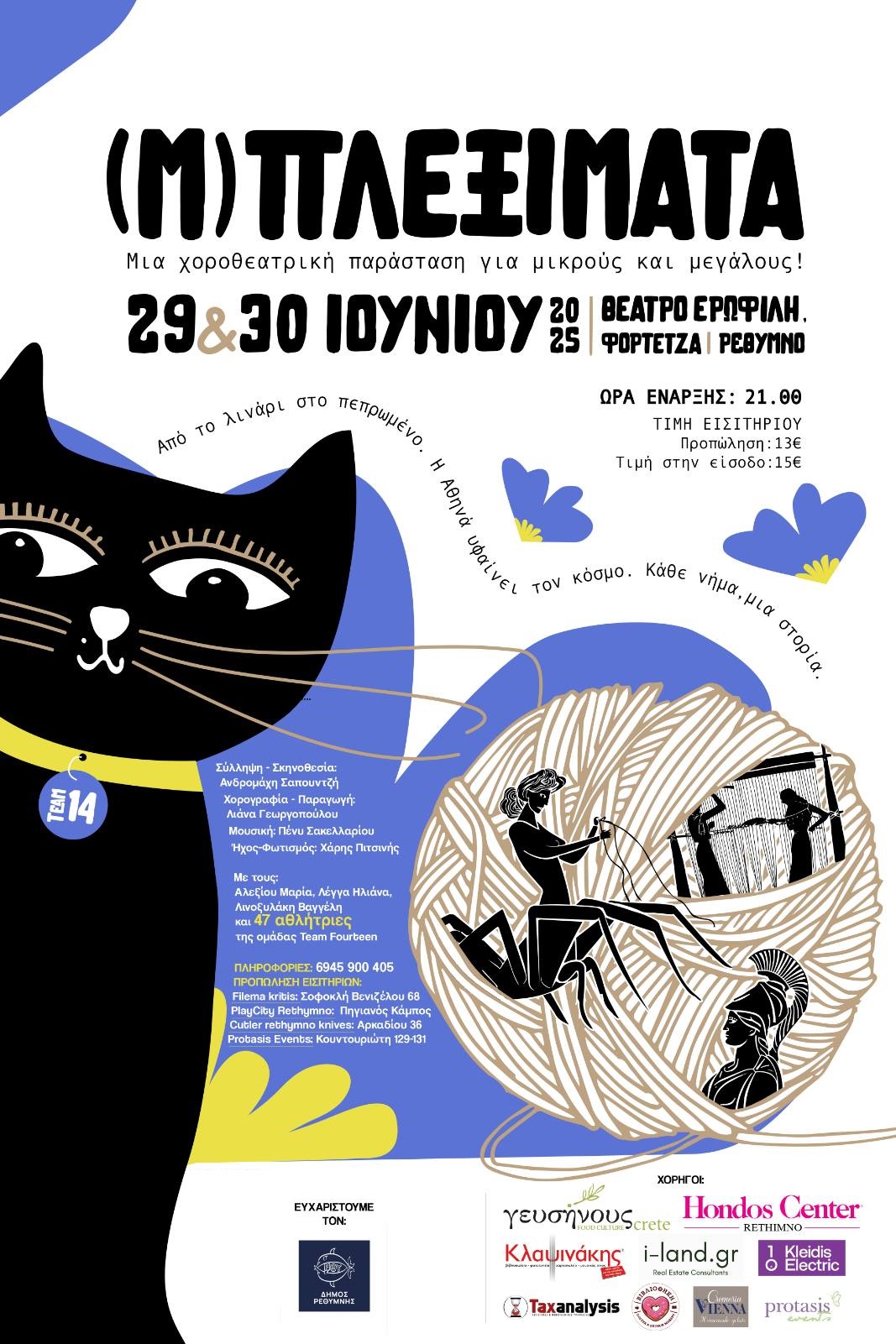 Θέατρο Ερωφίλη Erofili Theatre, Ρέθυμνο, Ρεθύμνου, GreeceΗ ομάδα Team Fourteen παρουσιάζει την χοροθεατρική παράσταση (Μ)ΠΛΕΞΙΜΑΤΑ βασισμένη σε μία πρωτότυπη σύλληψη με ανθρωπολογική, παιδαγωγική και αισθητική αξία, που συνδυάζει λαογραφικά, ιστορικά και μυθολογικά στοιχεία. Οι θεατές πιάνοντας... την άκρη του νήματος θα γνωρίσουν την πρώτη ύλη δημιουργίας του, θα ταξιδέψουν μέχρι την αρχαία Αθήνα και θα έρθουν σε επαφή με τις περιπέτειες […]