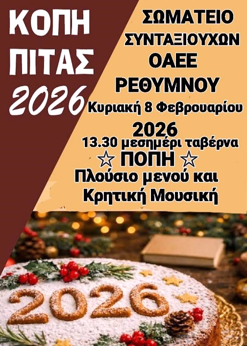 Κοπή Πρωτοχρονιάτικης πίτας του Σωματείου Συνταξιούχων ΟΑΕΕ Ρεθύμνου