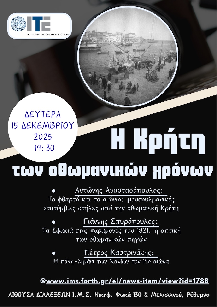 Διαλέξεις στο Ινστιτούτο Μεσογειακών Σπουδών με θέμα: «H Κρήτη των οθωμανικών χρόνων»
