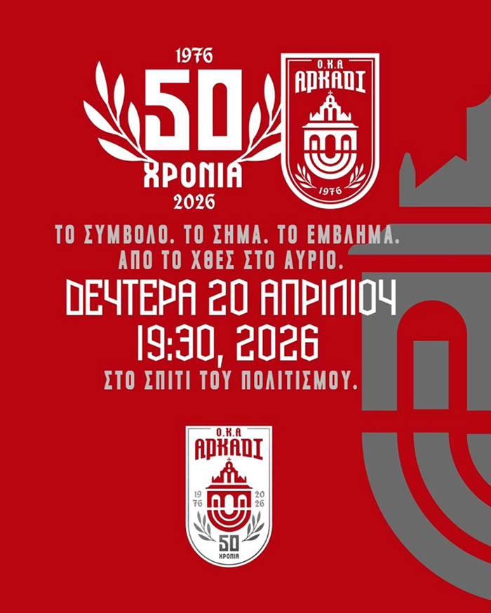 Το ΣΥΜΒΟΛΟ. Το ΣΗΜΑ. Το ΕΜΒΛΗΜΑ. Από το χθες στο αύριο! Την Δευτέρα 20 Απριλίου στις 19:30, 2026 στο Σπίτι του Πολιτισμού το Διοικητικό Συμβούλιο του Ομίλου Κλασικού Αθλητισμού ΑΡΚΑΔΙ, […]