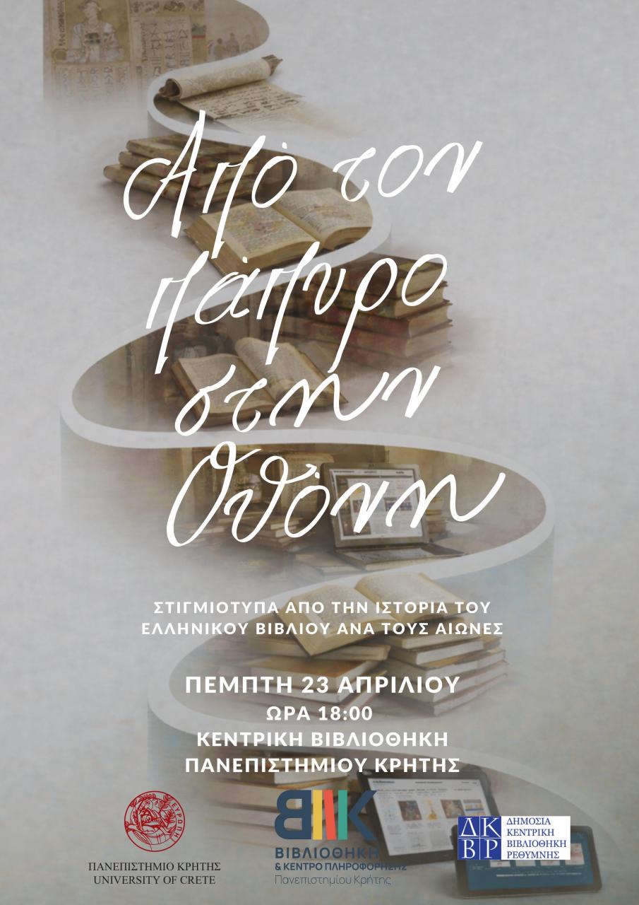 Εσπερίδα με θέμα: «Από τον πάπυρο στην οθόνη: στιγμιότυπα από την ιστορία του ελληνικού βιβλίου ανά τους αιώνες»
