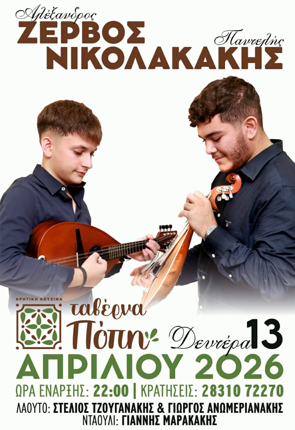 Κρητική βραδιά με τον Κώστα Κακουδάκη και το Μιχάλη Πετσάκη