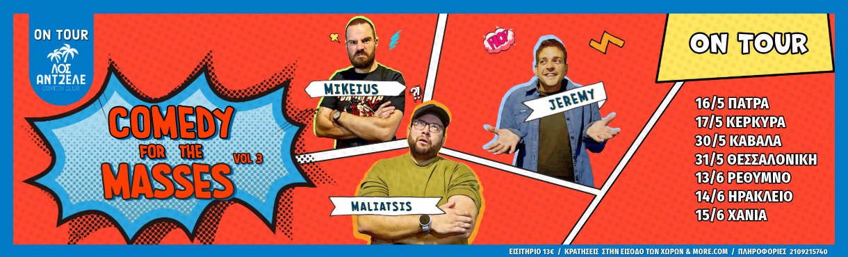 Cineland Παντελής Εμμανουήλ Πορτάλιου 3, Ρέθυμνο, Ρεθύμνου, ΕλλάδαΟ Κώστας Μαλιάτσης βγαίνει ξανά στο δρόμο — για να αποδείξει πως η γειτονιά είναι παντού. Η «Κωμωδία της Γειτονιάς» ετοιμάζει βαλίτσες και ταξιδεύει σε όλη την Ελλάδα, με νέα κείμενα, νέες ιστορίες και την ίδια πάντα ματιά που κάνει το κοινό να λέει: «Ρε Μαλιάτση, έχεις βάλει κάμερα στο σπίτι μου;» Ξεκινώντας από τους […]