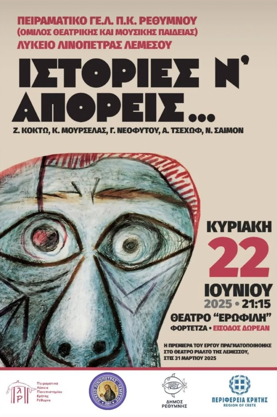 Μια ξεχωριστή θεατρική βραδιά προσφέρει η Εφηβική Θεατρική Ομάδα Ρεθύμνου με την παράσταση «Ο Ιδανικός στην Γαία και στην ΣτιγμηΓαία», βασισμένη στο ομώνυμο έργο του Ερωτόκριτου Κυμιωνή. Τη θεατρική απόδοση υπογράφουν η Μαρία Βαφειάδου και ο Γιώργος Πίτσης. Η εκδήλωση πραγματοποιείται στο πλαίσιο της δράσης «Μαζί Μπορούμε – Σχολή Αγάπης Εαυτού». Η παράσταση θα παρουσιαστεί […]