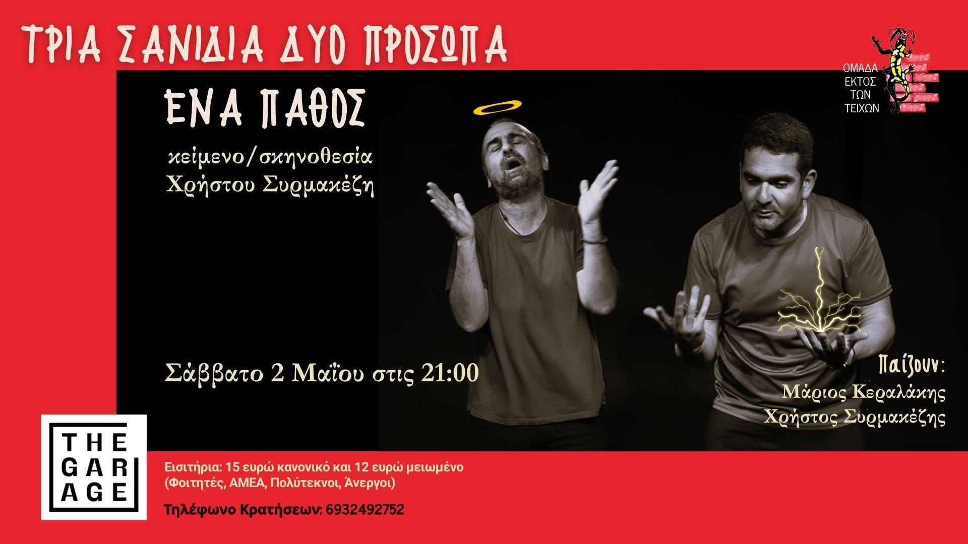 • Η παράσταση «Τρία σανίδια, δυο πρόσωπα, ένα πάθος» στο The Garage