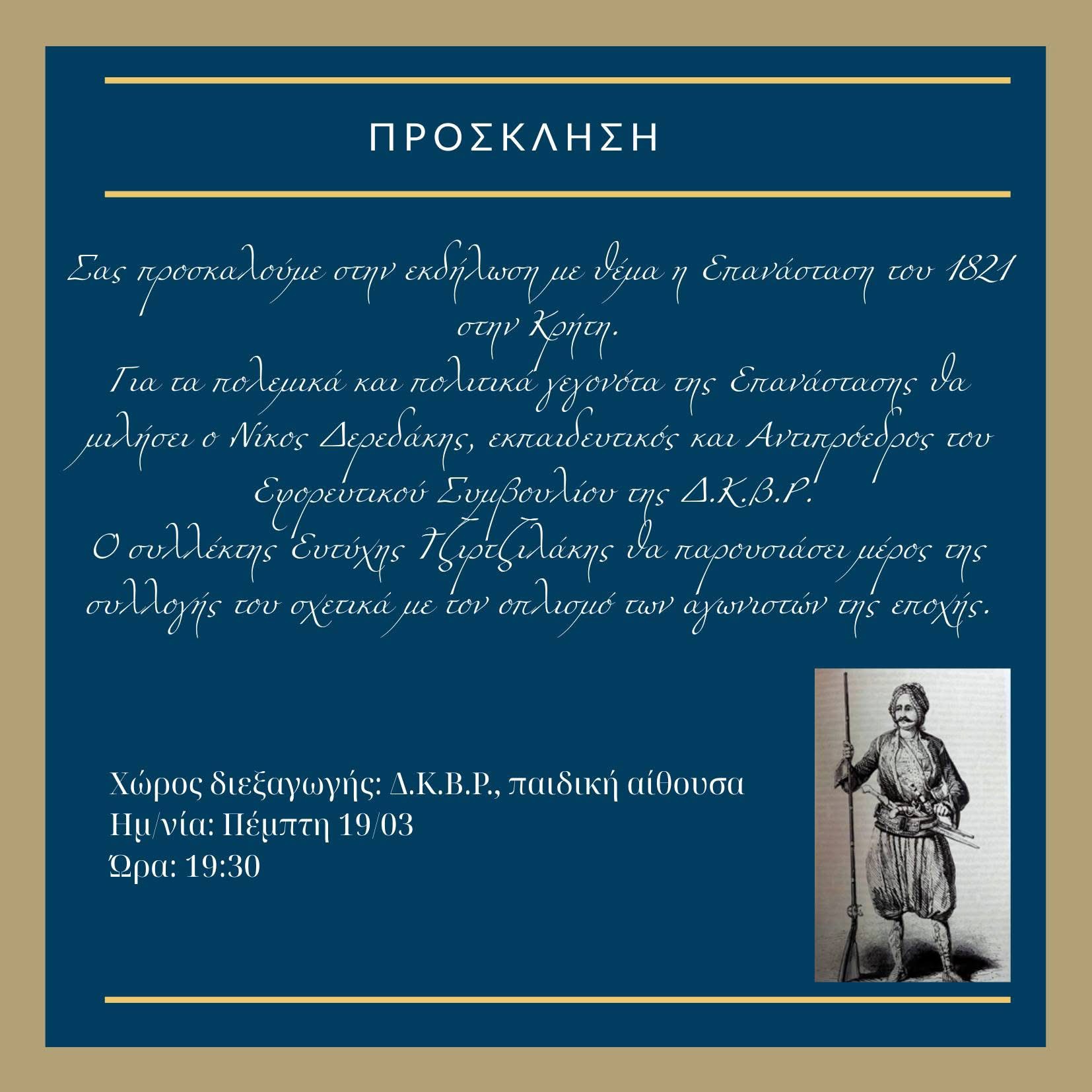 Η Επανάσταση του 1821 στην Κρήτη: Εκδήλωση στη Δημόσια Κεντρική Βιβλιοθήκη Ρεθύμνου