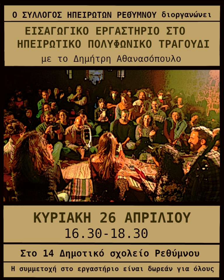 Εισαγωγικό εργαστήριο στο Ηπειρώτικο Πολυφωνικό τραγούδι από τον Σύλλογο Ηπειρωτών Ρεθύμνου