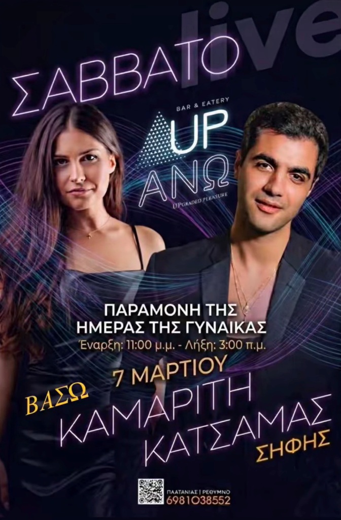 Μουσική βραδιά στο μεζεδοπωλείο Μπακαλόγατος με τη Νίκη Σταμπουλή και το Στέλιο Δραμηλαράκη. Τηλ. 28310 20550.