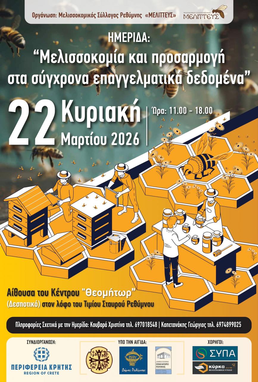 Εκδήλωση αφιερωμένη στους Αγίους Τρεις Ιεράρχες διοργανώνει ο Σύνδεσμος Φιλολόγων Ρεθύμνου, σε συνεργασία με τις Διευθύνσεις Α’/θμιας και Β’/θμιας Εκπαίδευσης Ρεθύμνου, την Παρασκευή 30 Ιανουαρίου 2026, στις 18:30, στην αίθουσα «ΘΕΟΜΗΤΩΡ». Το πρόγραμμα περιλαμβάνει παρουσιάσεις μαθητικών ψηφιακών εκπαιδευτικών έργων, εισηγήσεις με επίκεντρο τη διαχρονική παιδαγωγική αξία των Τριών Ιεραρχών, μουσικό πρόγραμμα από το σύνολο «Μουσικές […]