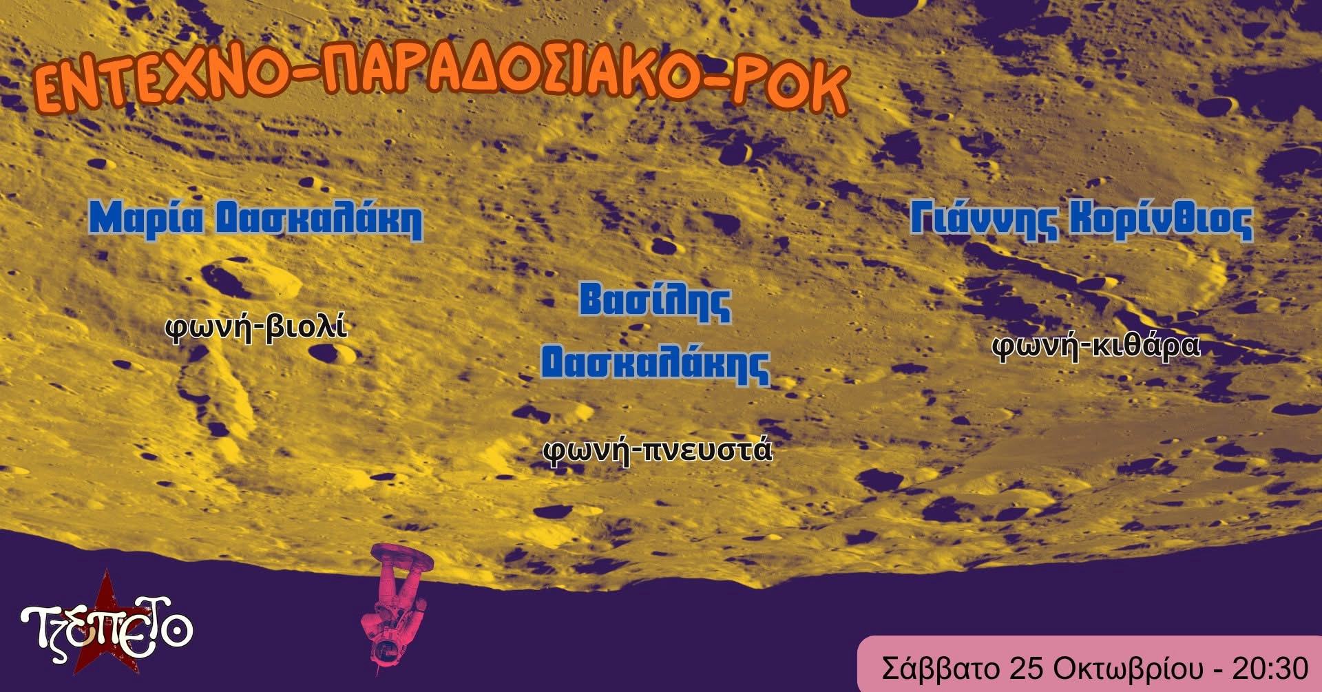 Το Τζεπέτο υποδέχεται τη Μαρία Δασκαλάκη (φωνή - βιολί), τον Γιάννη Κορίνθιο (φωνή - κιθάρα) και τον Βασίλη Δασκαλάκη (φωνή - πνευστά) σε μία μουσική βραδιά με έντεχνα, παραδοσιακά και ροκ. Έναρξη 20.30 Συνεταιρισμός Τζεπέτο Οδός Κατεχάκη (κάτω από τη Φορτέτζα), Ρέθυμνο