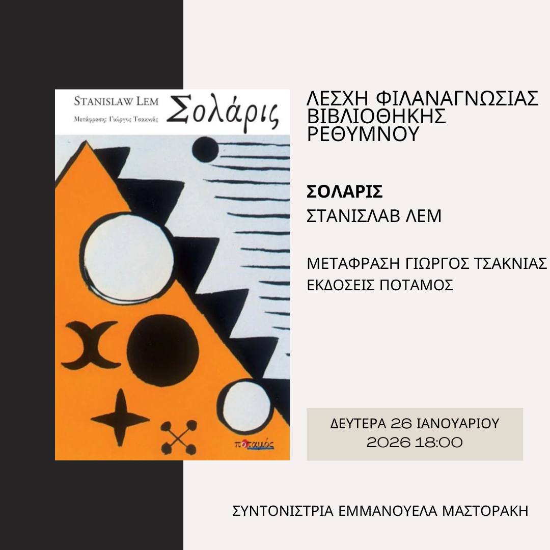 • «Σολάρις» του Στάνισλαβ Λεμ στη Λέσχη Φιλαναγνωσίας της Δημόσιας Βιβλιοθήκης Ρεθύμνου