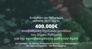 Χρηματοδοτείται η αναβάθμιση σχολικών μονάδων του Δήμου Ρεθύμνης για την προσβασιμότητα...