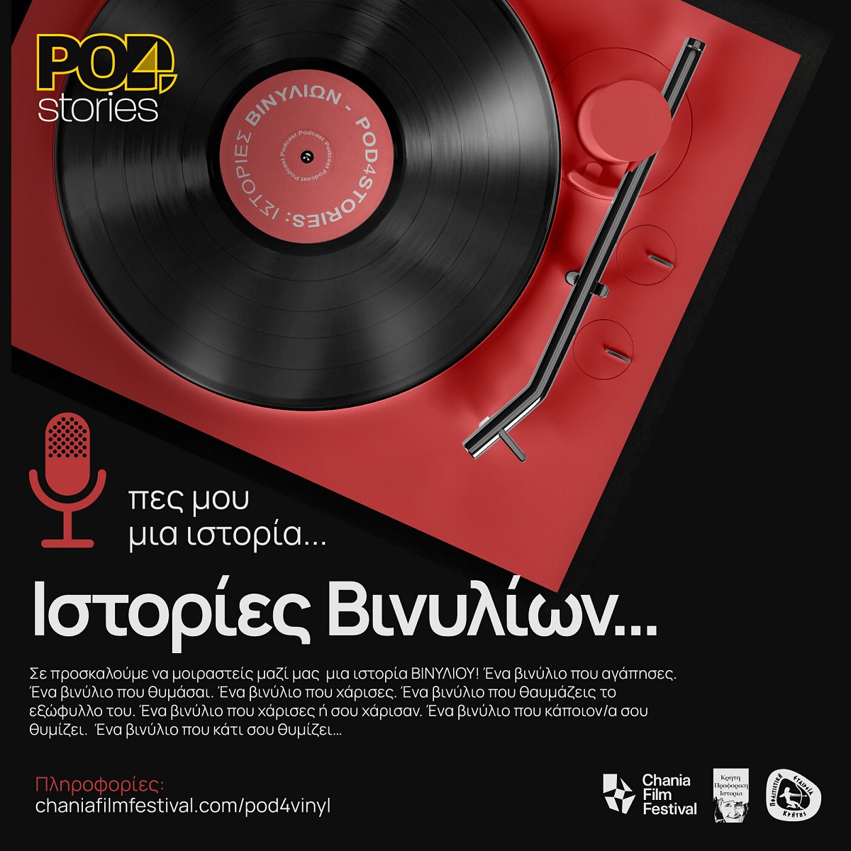 Πρακτικές Οδηγίες για να φτιάξετε και να μας στείλετε τις ιστορίες σας. ΕΔΩ: https://chaniafilmfestival.com/pod4vinyl/