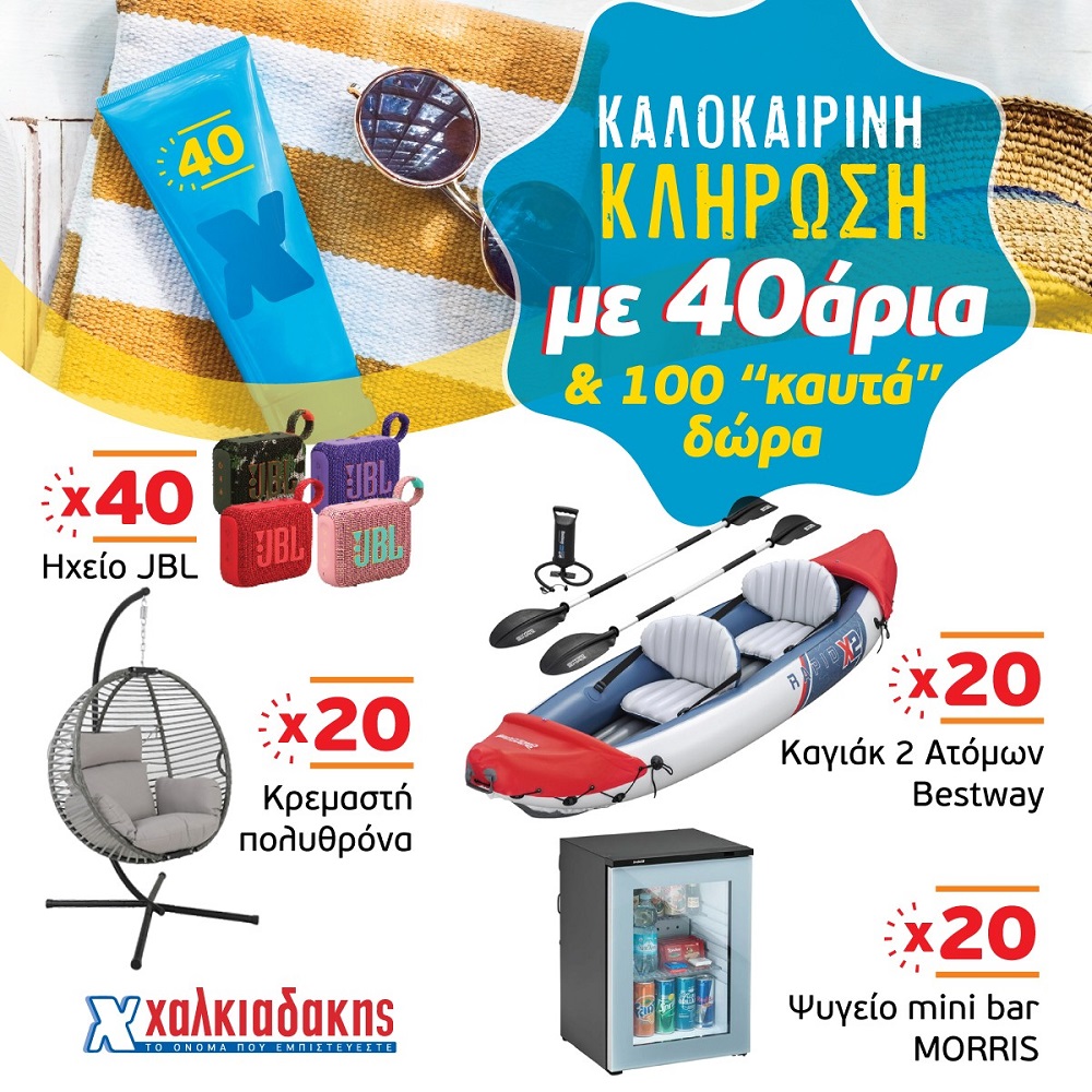 Από το Σάββατο 14 Ιουνίου έως και την Πέμπτη 31 Ιουλίου 2025 μπαίνετε στη νέα καλοκαιρινή κλήρωση κάνοντας τις αγορές σας και χρησιμοποιώντας την Xtra Card Χαλκιαδάκης και Happy Home Card.