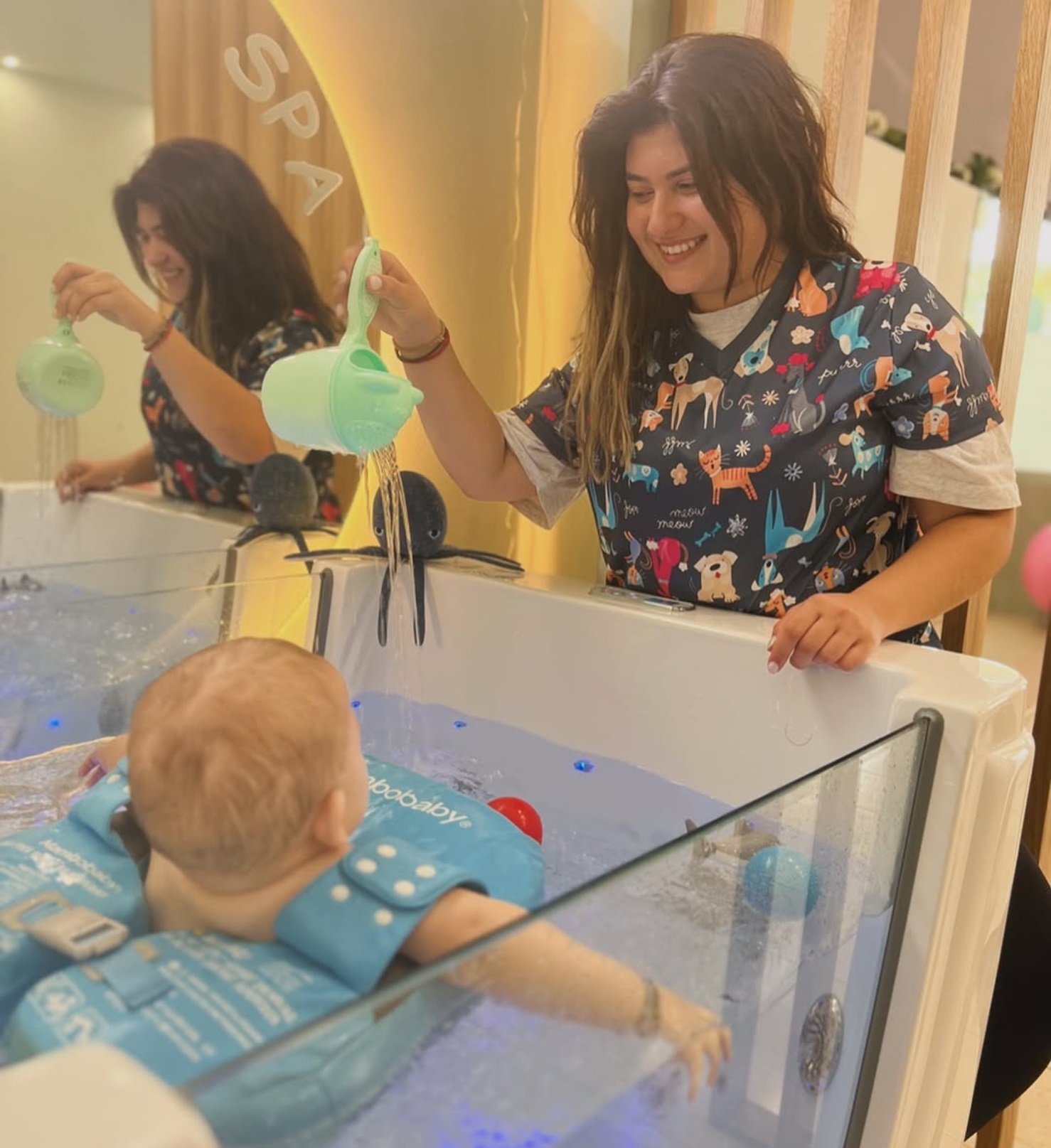 Πίσω από αυτή την καινοτόμο προσέγγιση βρίσκεται η Έλενα Ασημακοπούλου, ιδιοκτήτρια και υπεύθυνη λειτουργίας του spa. Με εξειδίκευση στη σύγχρονη μαιευτική φροντίδα κύησης, τοκετού και λοχείας, είναι εκπαιδεύτρια βρεφικού μασάζ (IAIM-CIMI), instructor sensory & messy play, art and therapy instructor, καθώς και δασκάλα προγεννητικής και μεταγεννητικής yoga.